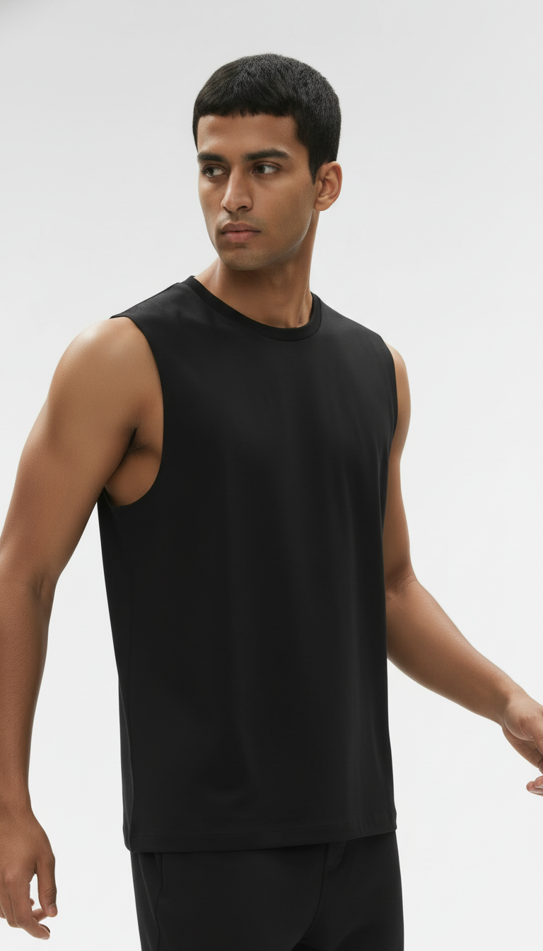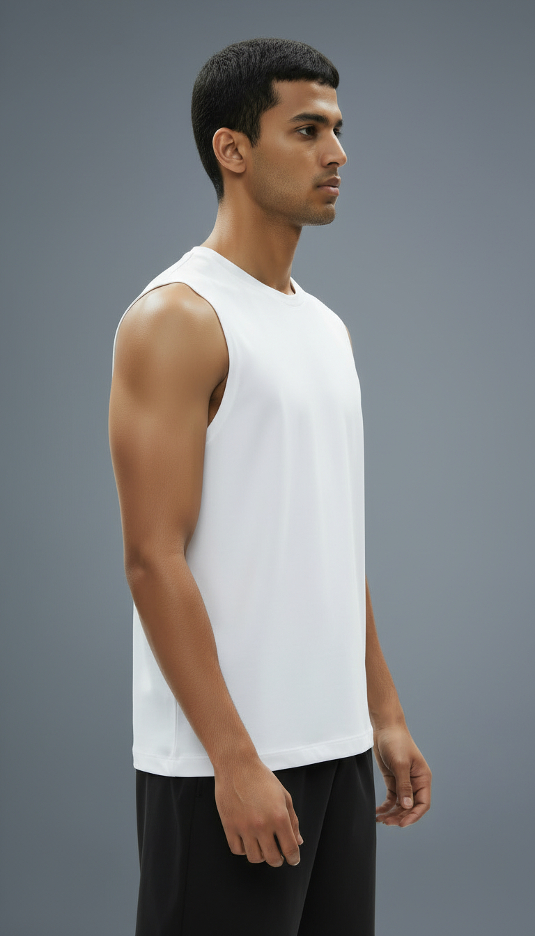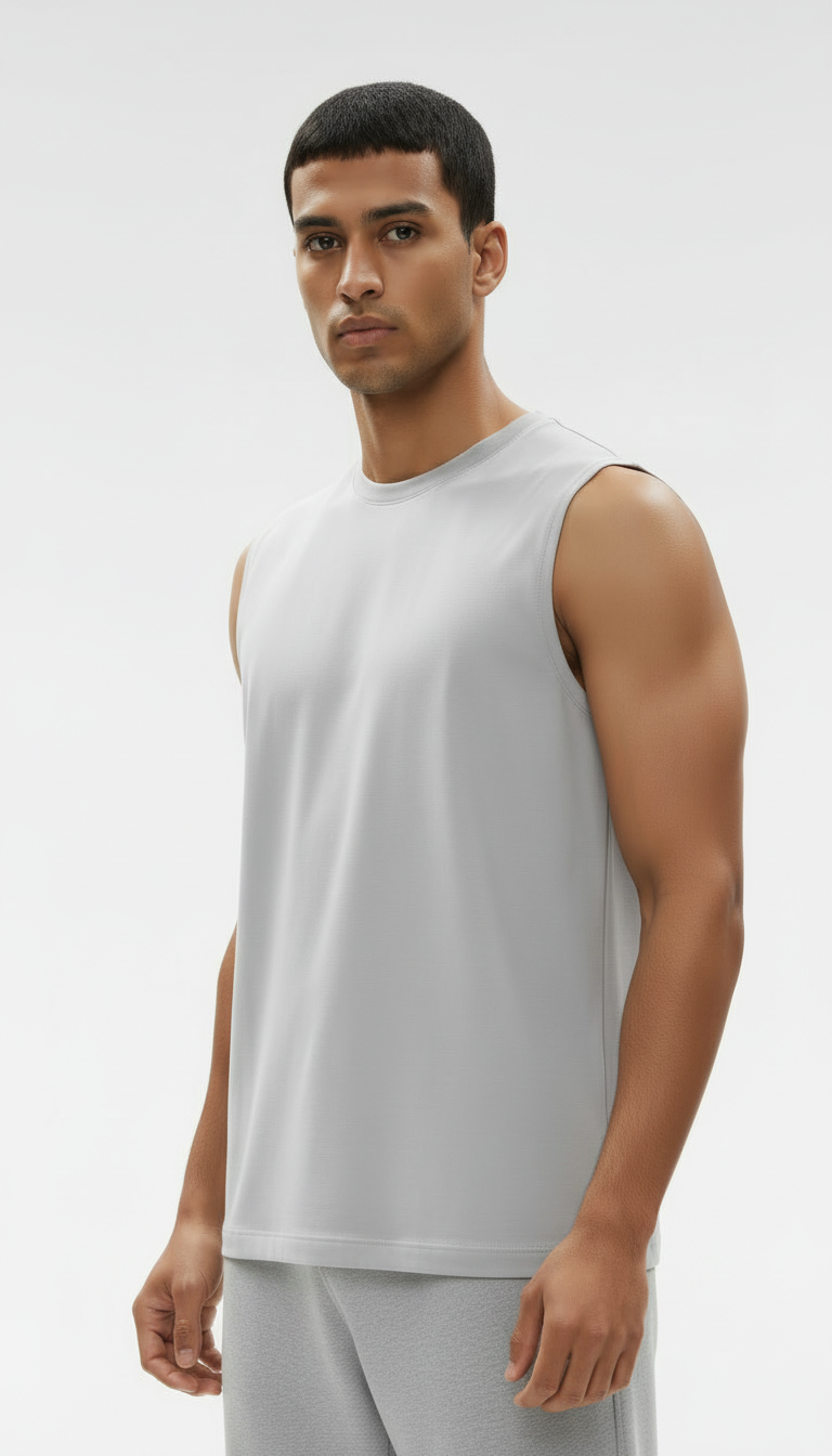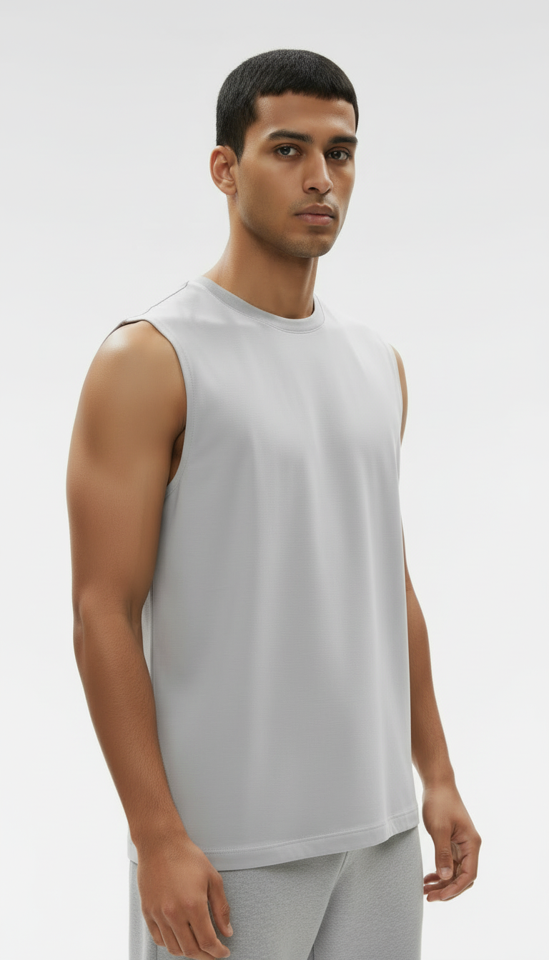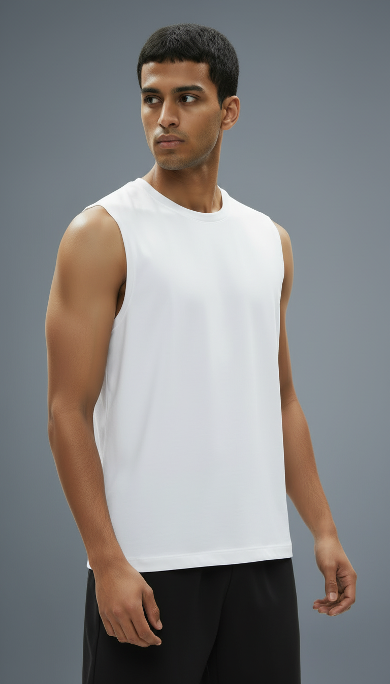 Men's Loose Fit vest top is functional fabric made with DryMove™, which helps pull moisture away from your skin, keeping you comfortably dry while moving. Loose fit with a round neckline.