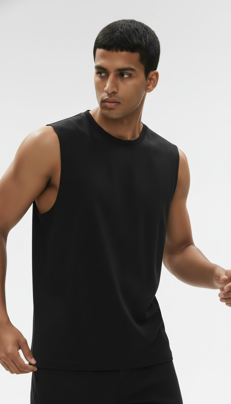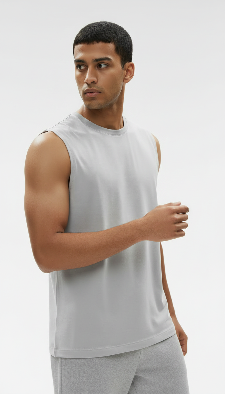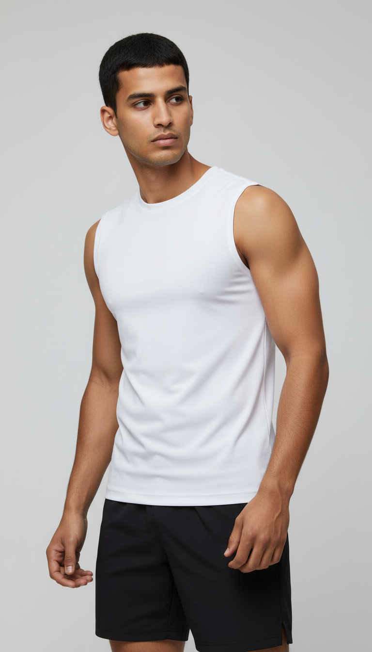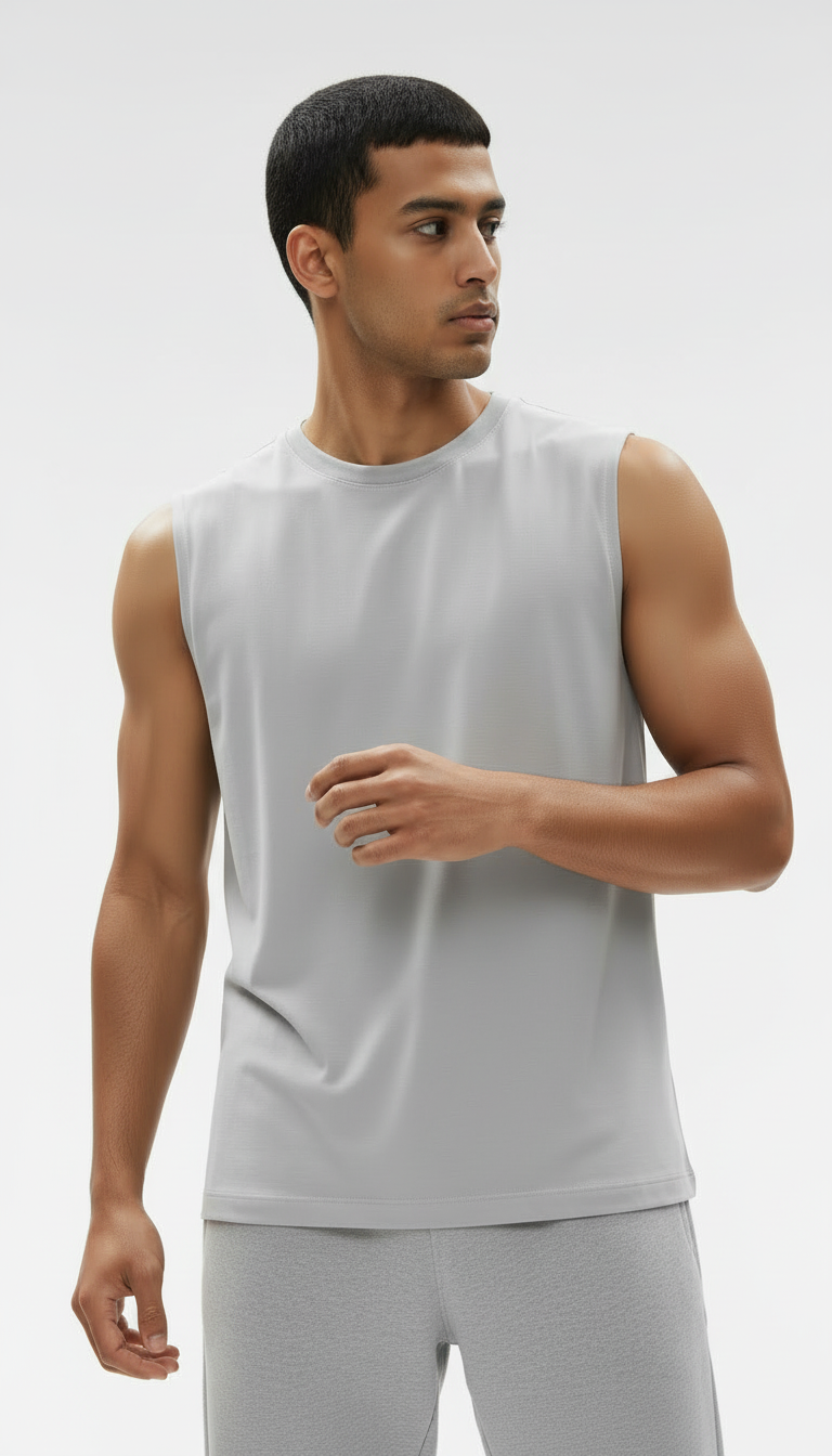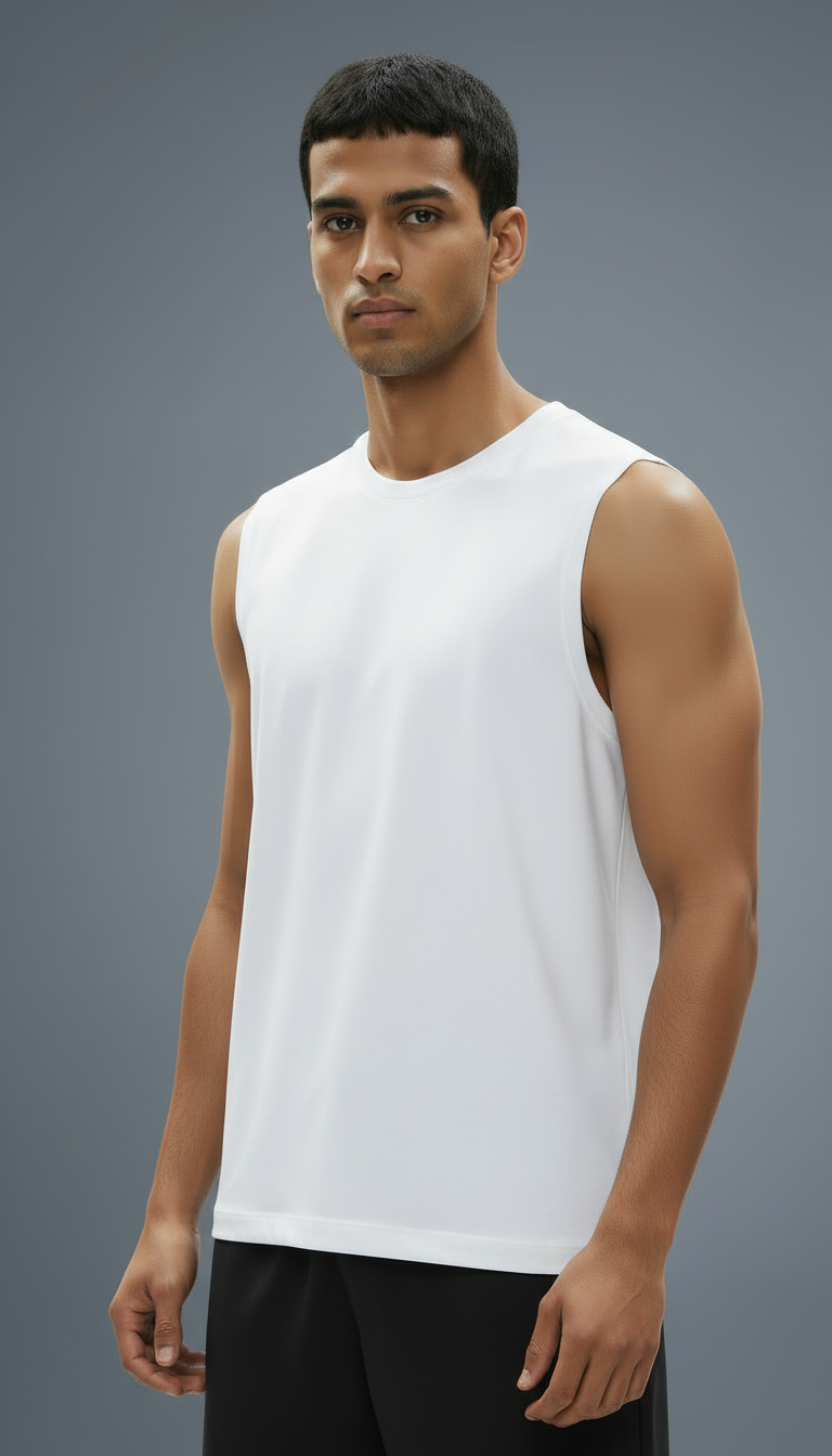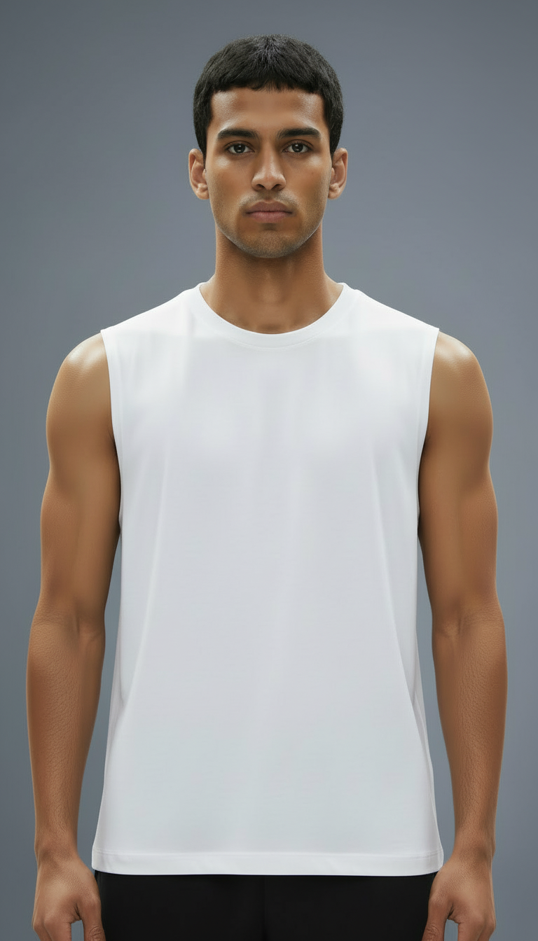 Men's Loose Fit vest top is functional fabric made with DryMove™, which helps pull moisture away from your skin, keeping you comfortably dry while moving. Loose fit with a round neckline.