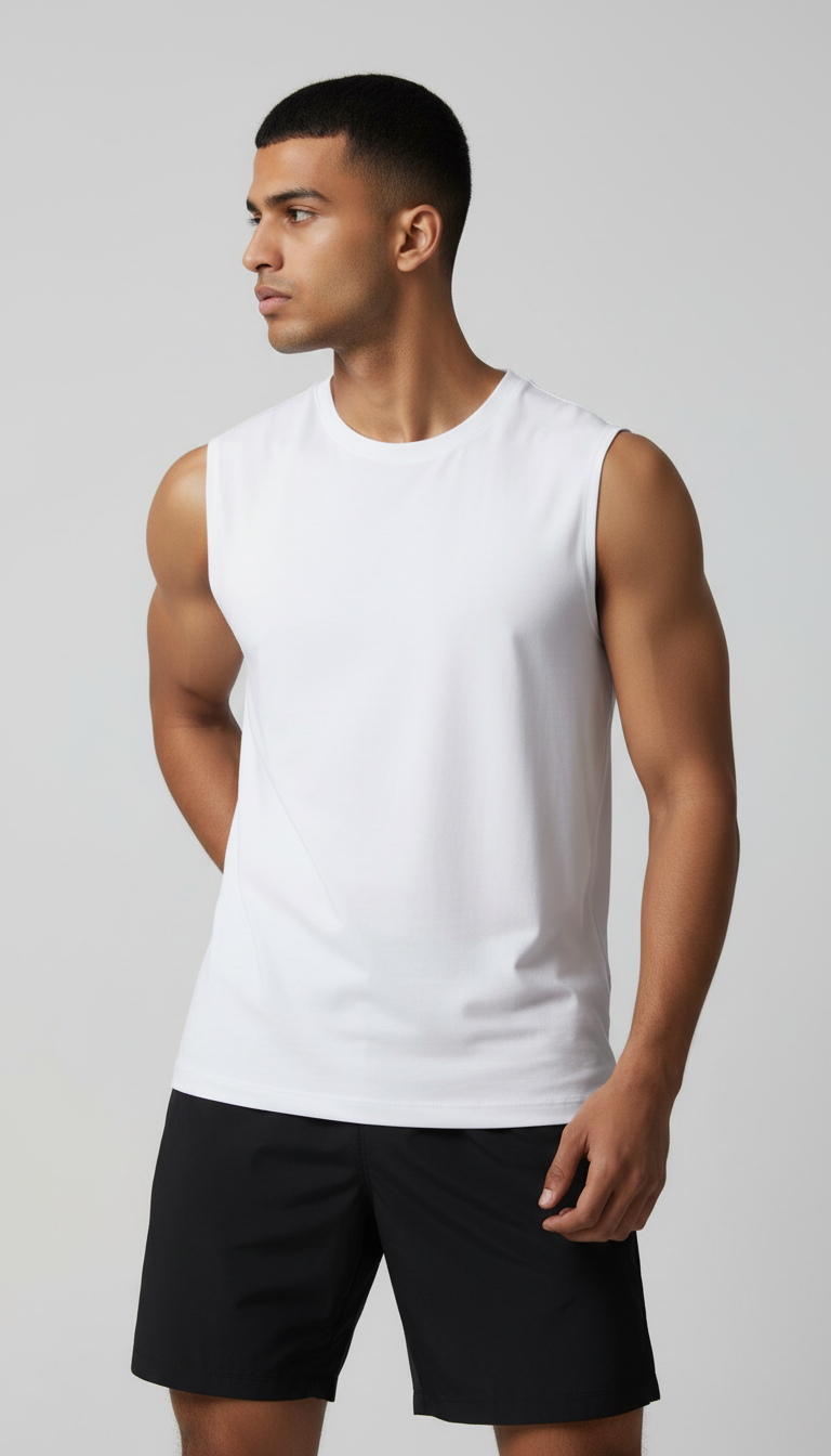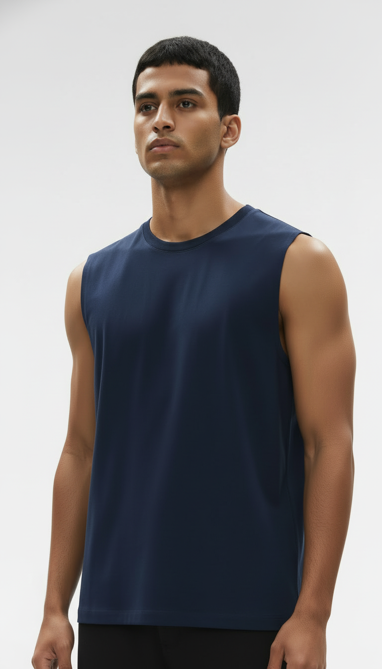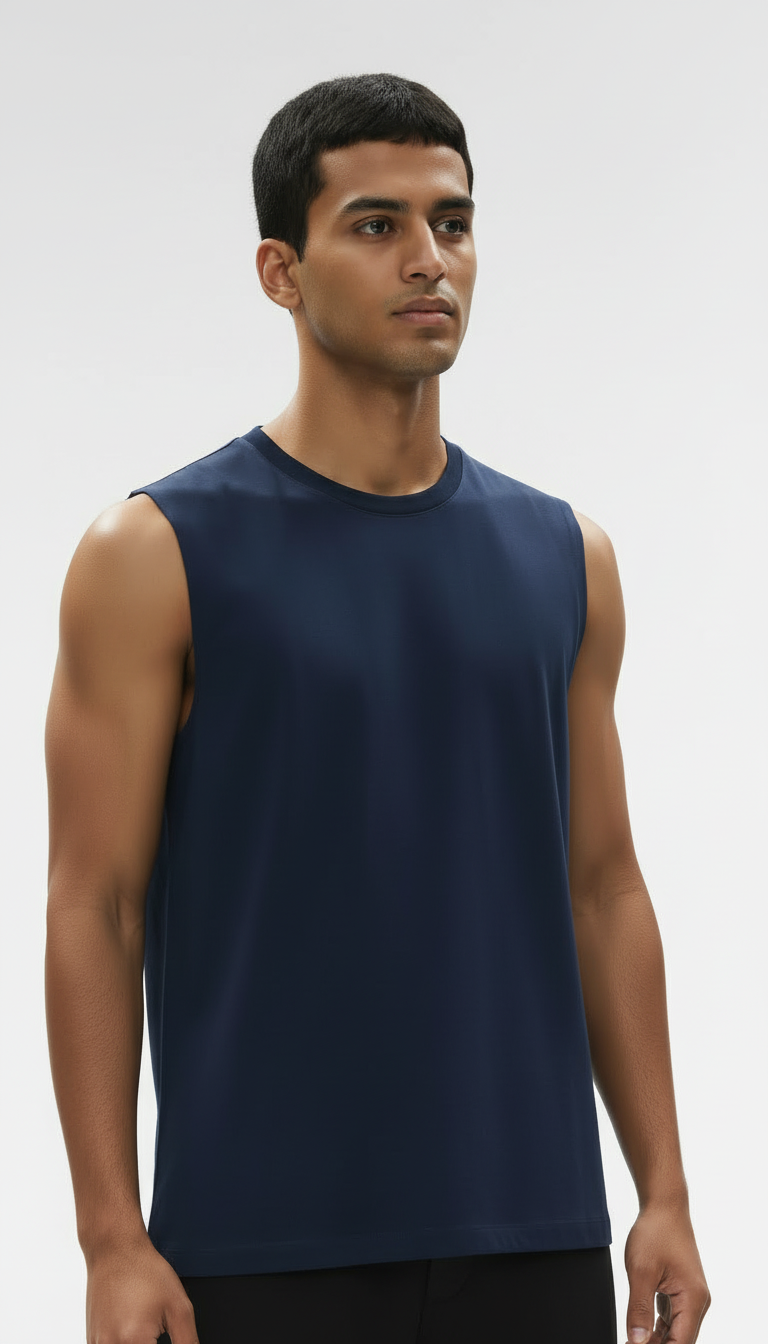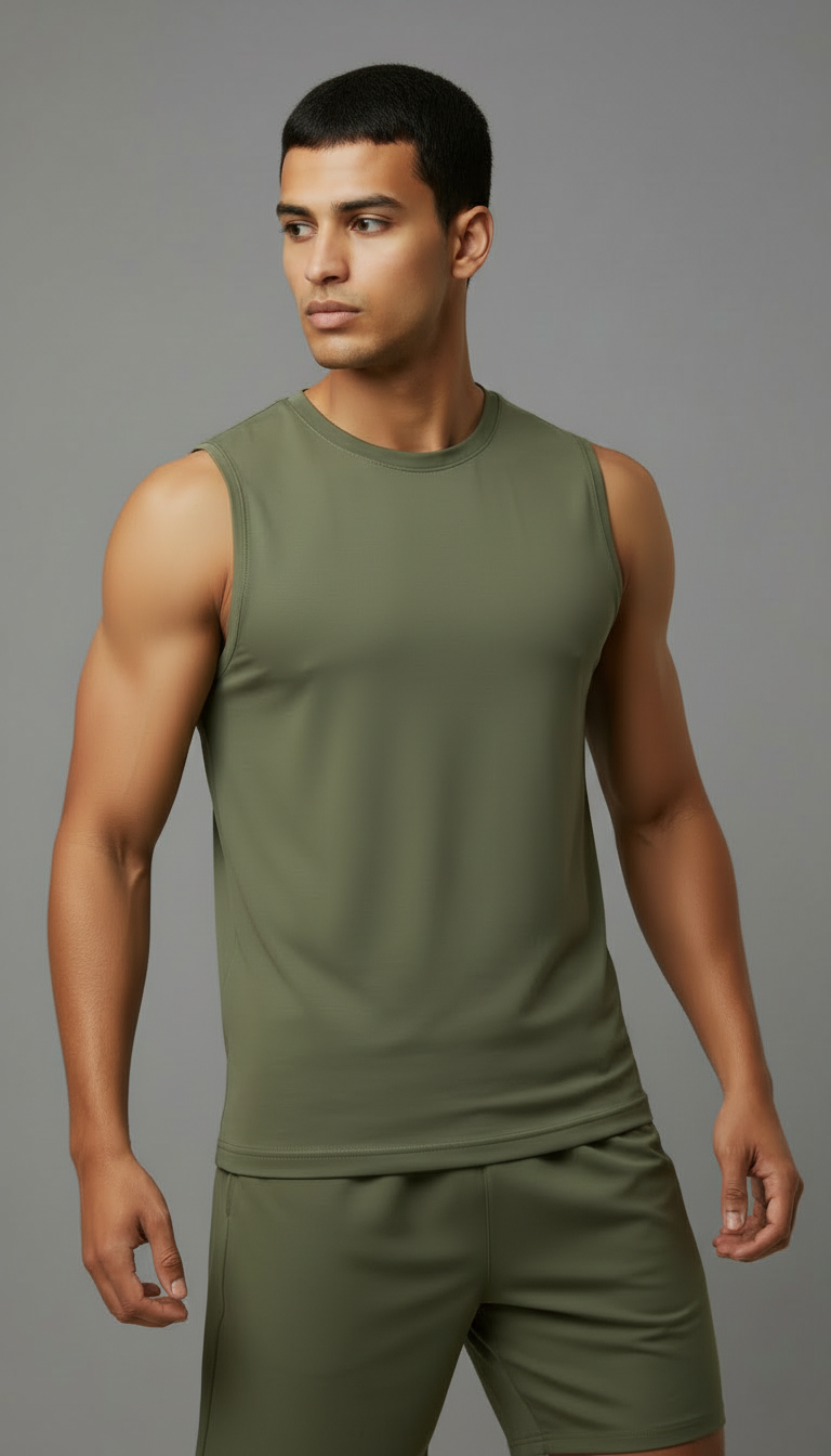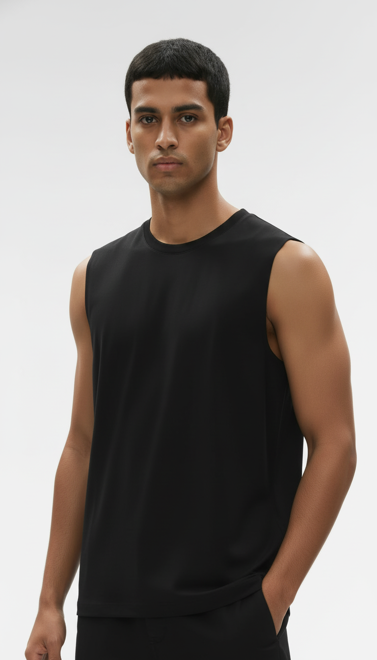 Men's Loose Fit vest top is functional fabric made with DryMove™, which helps pull moisture away from your skin, keeping you comfortably dry while moving. Loose fit with a round neckline.