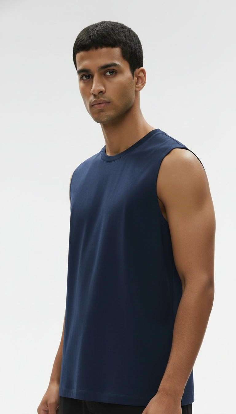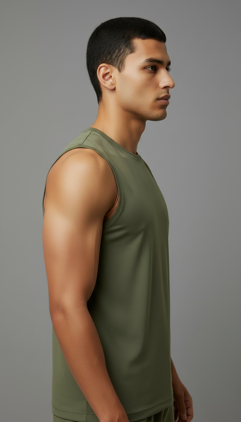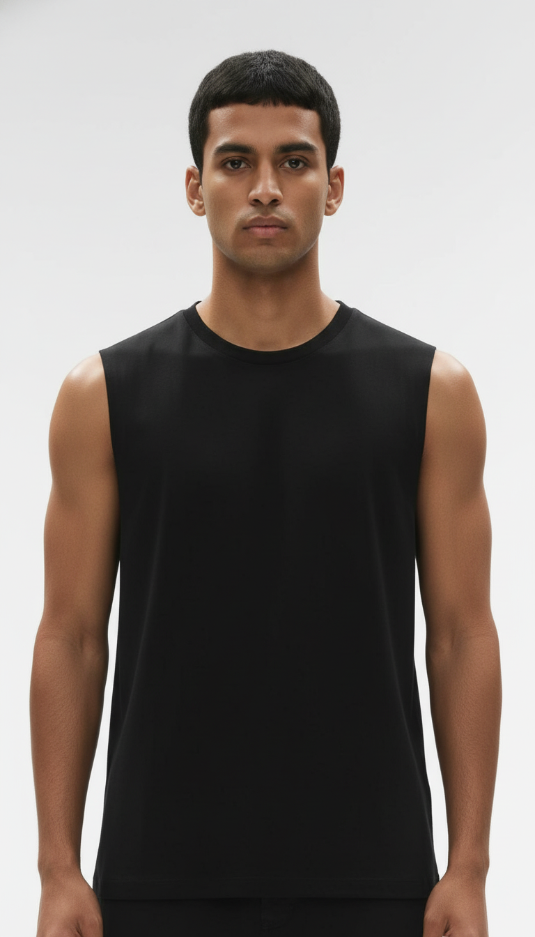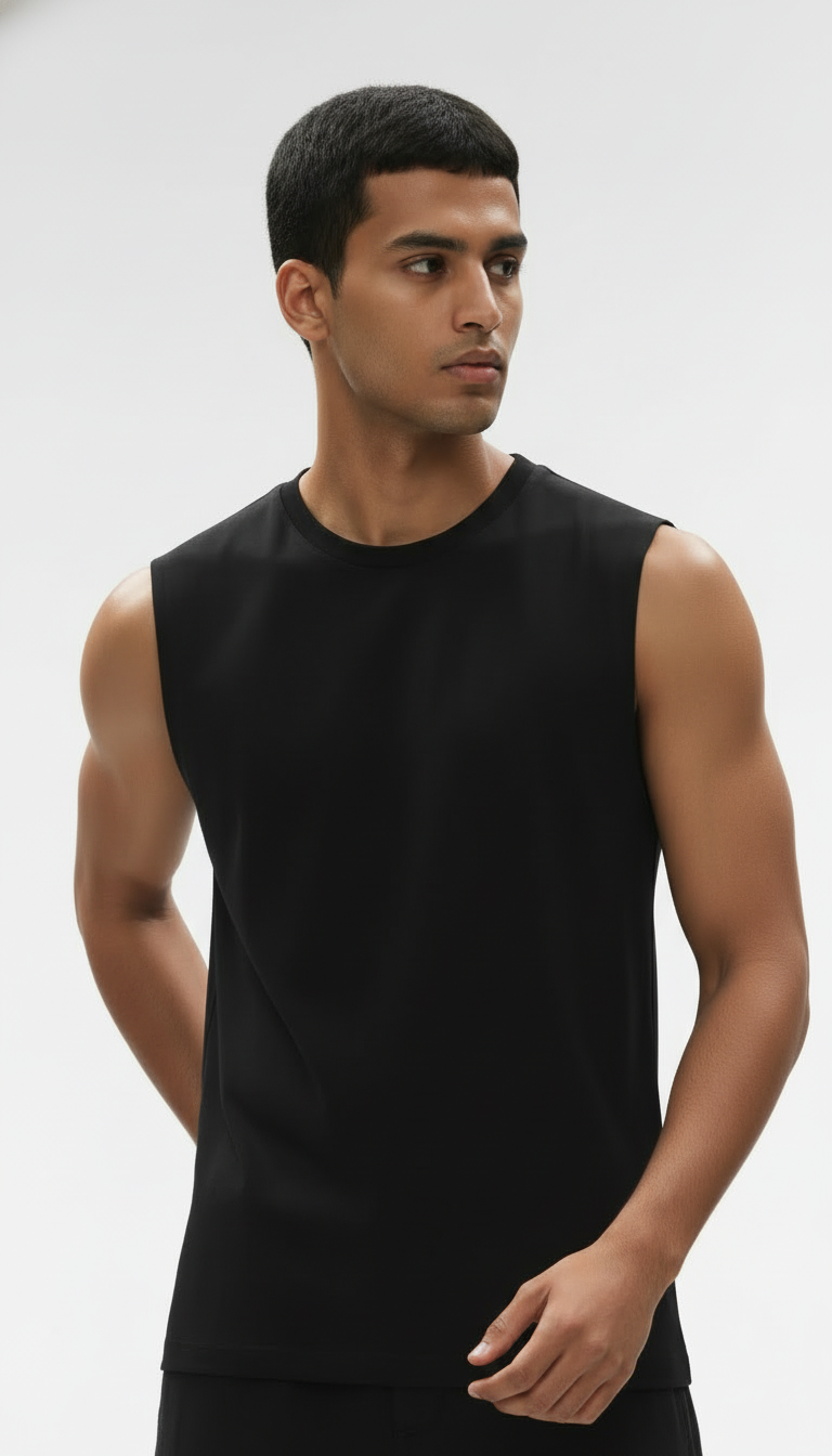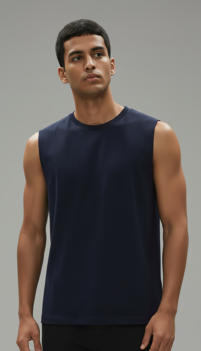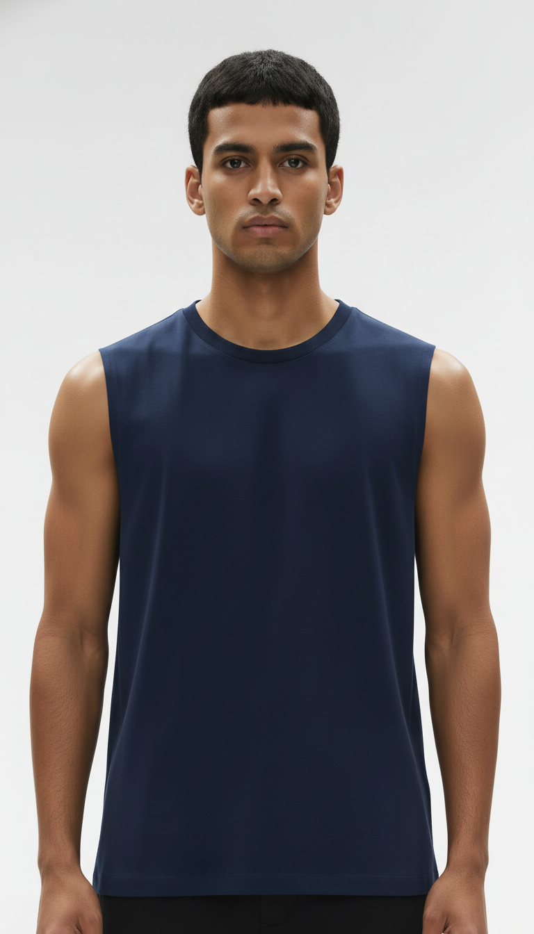 Men's Loose Fit vest top is functional fabric made with DryMove™, which helps pull moisture away from your skin, keeping you comfortably dry while moving. Loose fit with a round neckline.